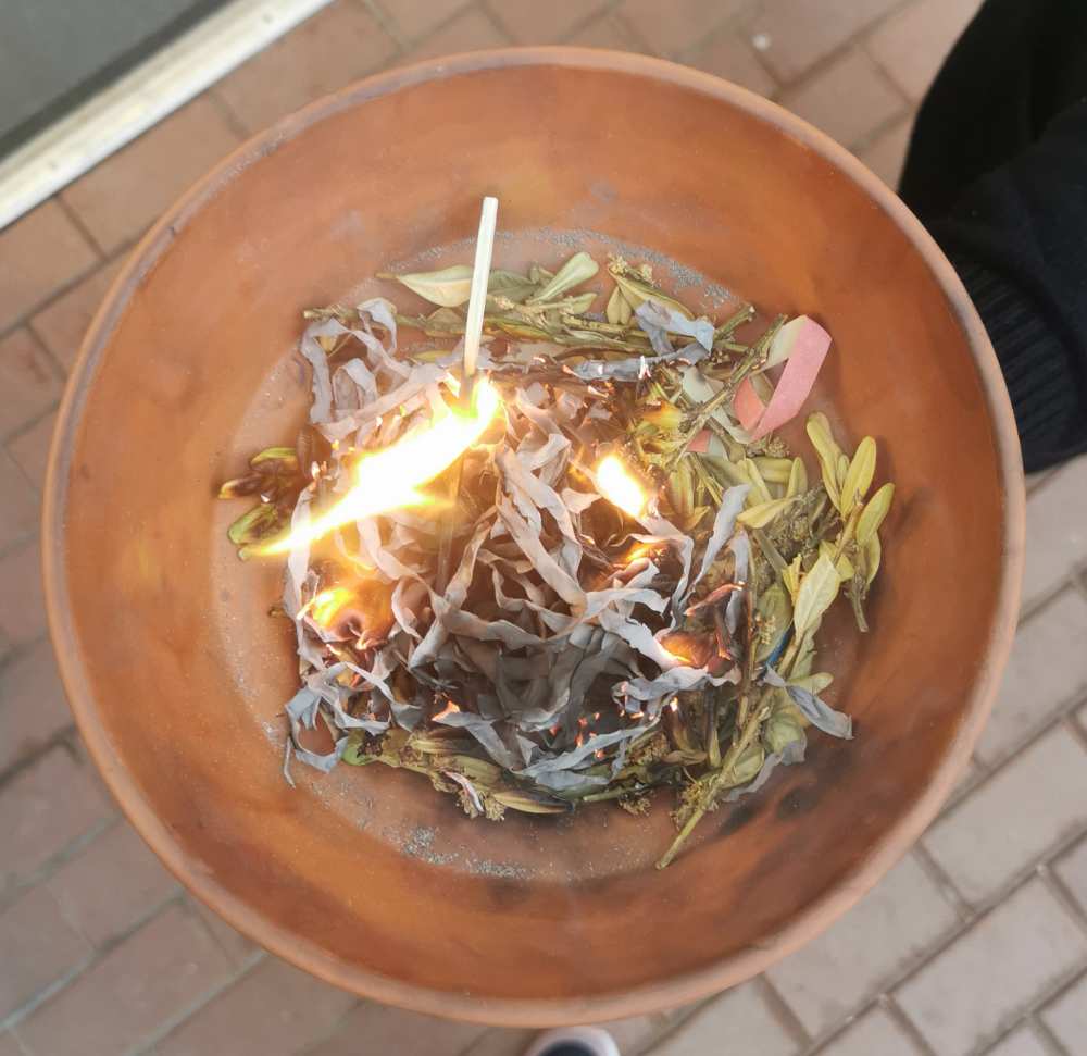 Zum Abschluss der Karnevalszeit haben wir außerdem Luftschlangen und unsere Zweige von den Kreuzen verbrannt. Wer wollte, bekam ein Aschekreuz auf die Stirn gezeichnet.