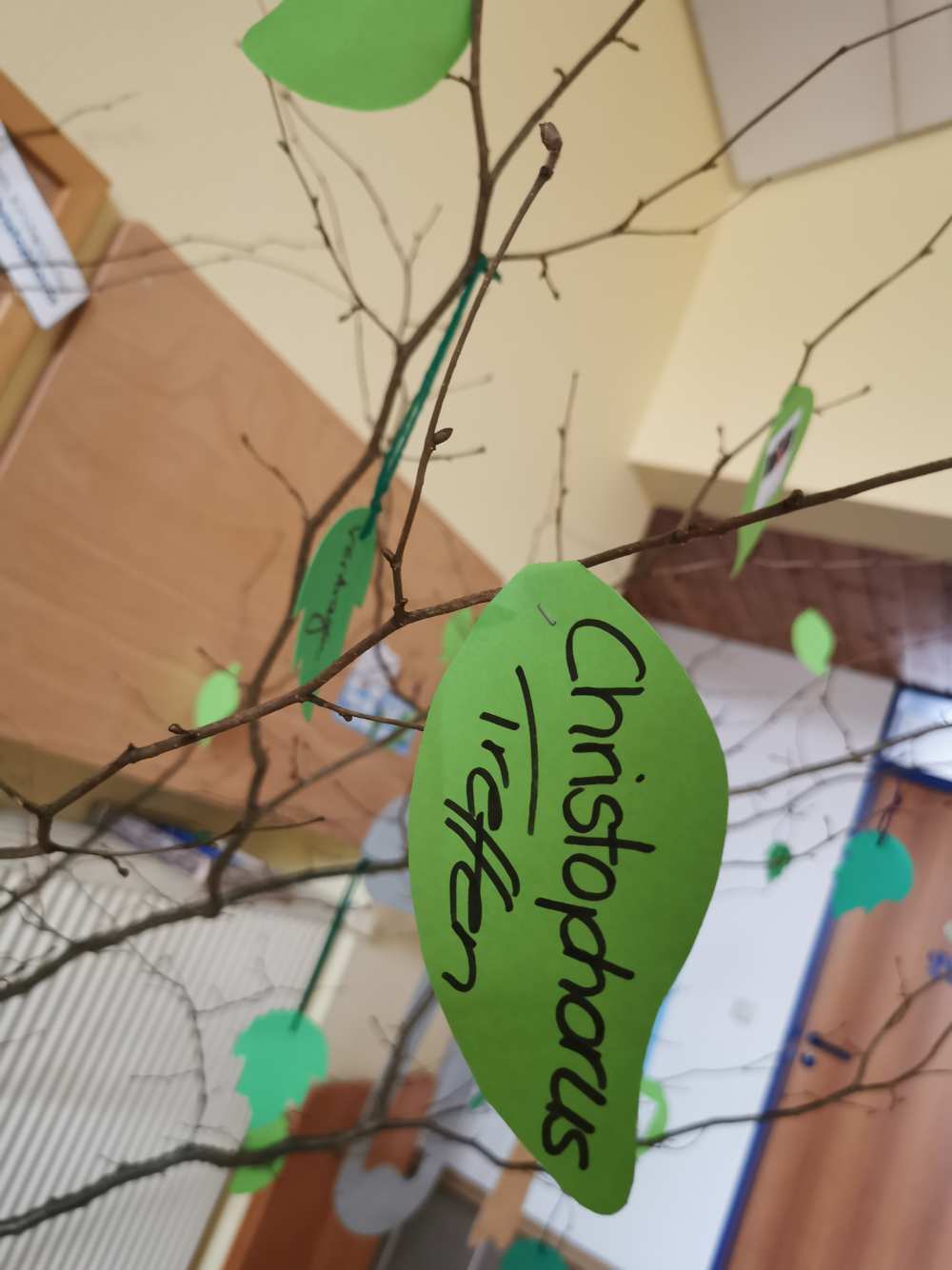 Neu in unserer Halle ist der Fastenbaum. Noch ist er recht kahl. Aber im Laufe der Fastnezeit wird er mehr und mehr Blätter bekommen. Jeder und jede darf während der Fastenzeit ergänzen, worüber man sich gefreut hat, was gut gelungen ist, wie man anderen eine Freude machen kann und viele mehr!