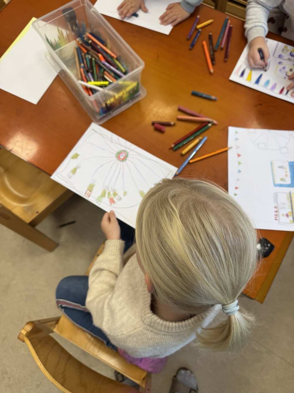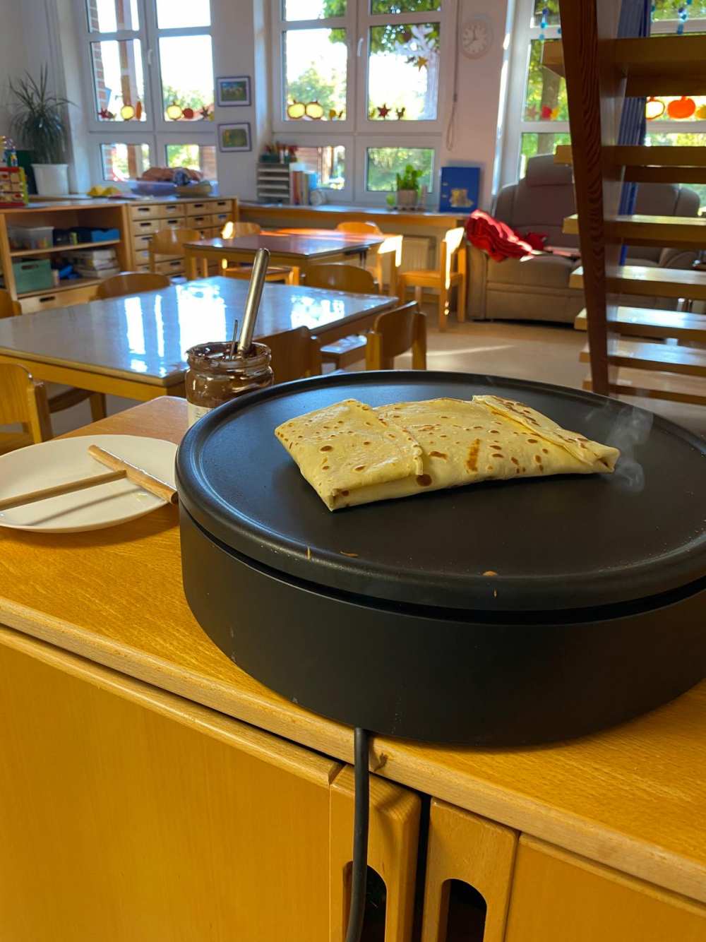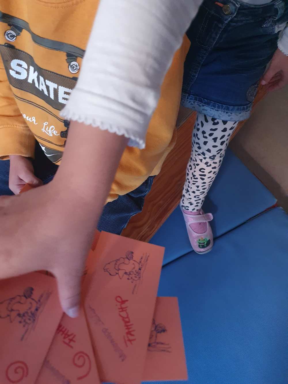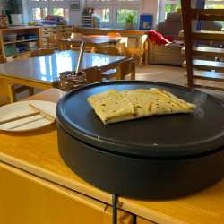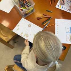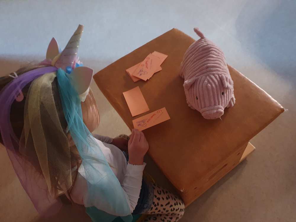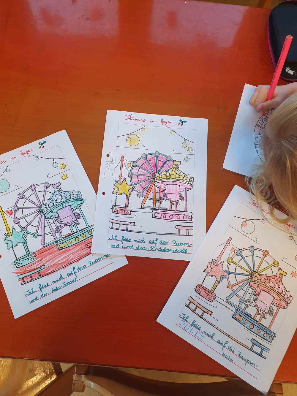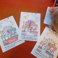 In der Woche vor der Hagener Kirmes wird auch bei uns gefeiert: Es wird Kirmes-Essen (Popcorn & Crepes) genascht, es werden Kirmes-Accessoire gebastelt, Kirmes-Bilder gemalt, es wird das Auftrommeln geübt und in der Turnhalle ist auch eine Kirmes aufgebaut: Dort kann man Chips kaufen um Karussell zu fahren, Dosen werfen, Autoscooter fahren, Party machen und vieles mehr.