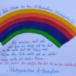 „Weil Gott uns auch ohne Wort versteht - manchmal ist Wünschen auch ein Gebet.“ Begleitet von dieser Aussage sammelten einige Kinder aus unserem Kindergarten Wünsche für die Menschen in der Ukraine auf einem gelben und einem blauen Luftballon und ließen ihn in den blauen Himmel steigen mit der großen Hoffnung, dass all diese Wünsche in Erfüllung gehen.