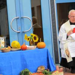 Am Freitag dem 02.Oktober versammelten sich alle Kindergartenkinder und zwei Jungen aus der Krippe zu einem Erntedankgottesdienst im Innenhof.